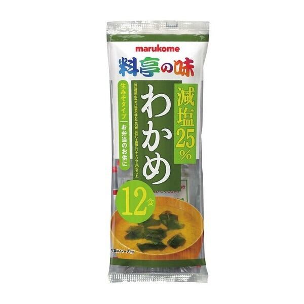 米みそ、豆みそ、麦みその3種のみそをかつおだしベースで調味し、わかめを練り込んだ減塩タイプの即席生みそ汁です。手軽に減塩わかめのおみそ汁がお楽しみいただけます。