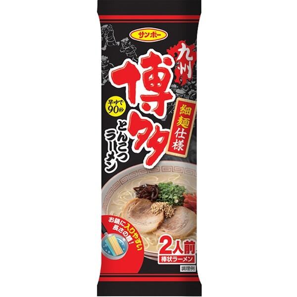 しっかりとしたコシと小麦の味が楽しめる博多の細麺仕様です。スープはめんとのバランスを考え旨味の強い豚骨エキスを配合しており、豚骨の香りを引き立てる香辛料を絶妙な割合でブレンドしています。