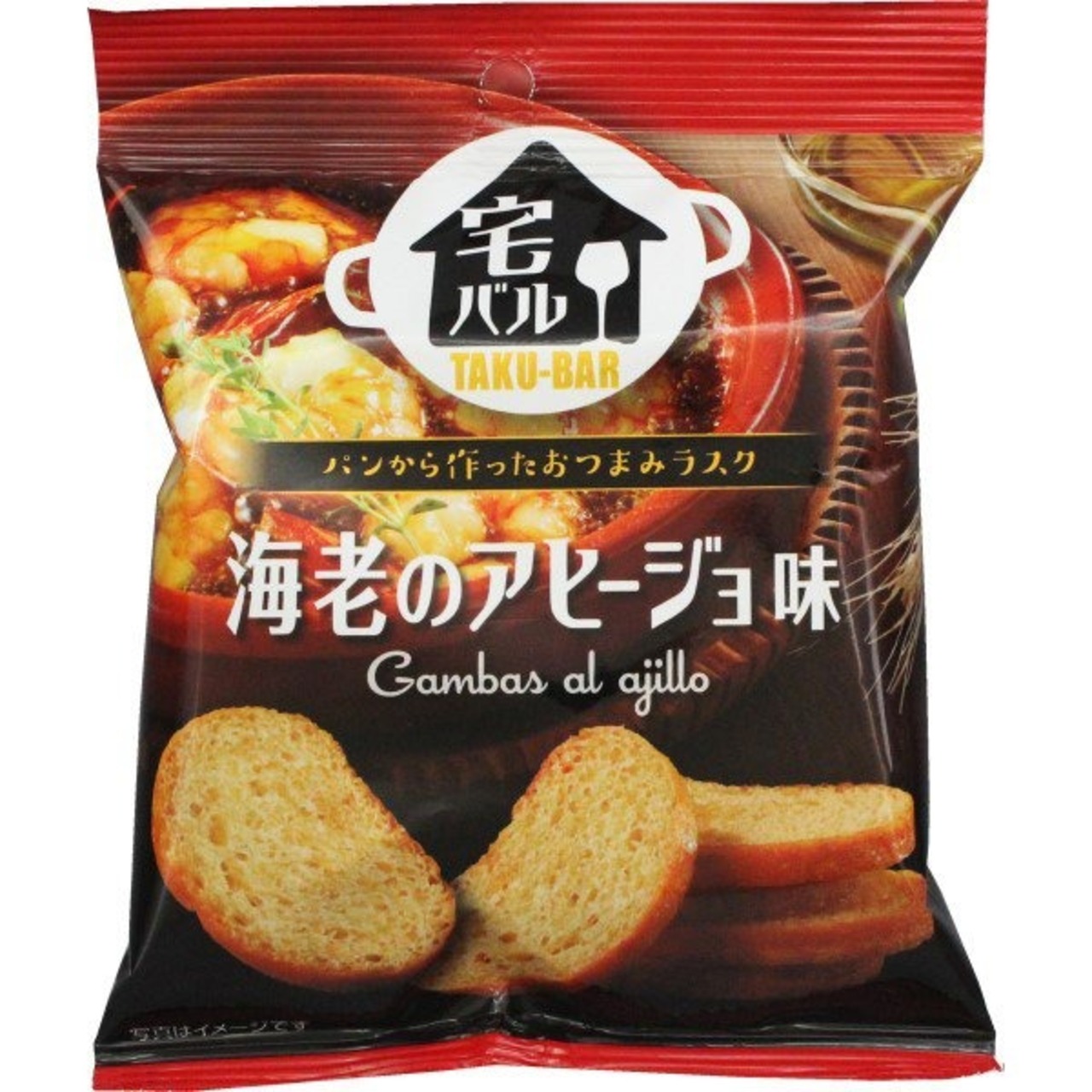 自宅でバル気分が楽しめる、ひとくちおつまみラスク。海老粉をパン生地に練り込み、香り豊かで濃厚な海老のアヒージョ味を再現しました。ご自宅でワインと一緒に本格的なバル料理の雰囲気をお楽しみください。