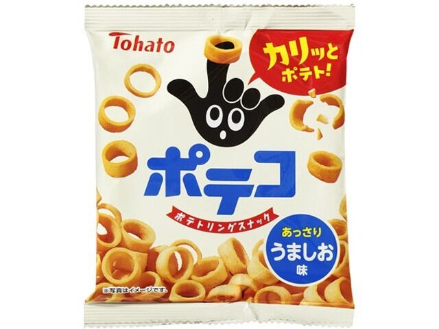 カリッとはじける食感のポテトリングスナック、ポテコのうましお味です