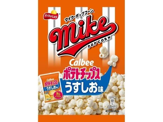 昆布のうまみと、ほどよいしお味が特徴の「カルビーポテトチップスうすしお」と「マイクポップコーン」のフワっとした食感を組み合わせた食べ飽きないクセになるコラボレーションスナック。