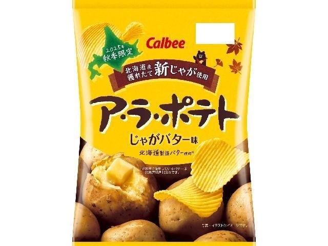 秋収穫の北海道産新じゃがのおいしさをしっかりと楽しめる秋限定厚切りポテトチップス。北海道製造100%のバター使用しました。