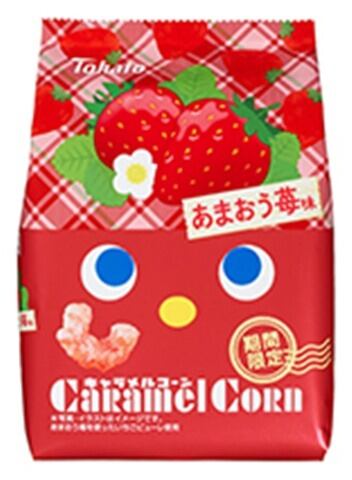 ふんわりサクサク、キャラメルコーンのあまおう苺味です