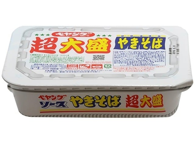 ペヤングソースやきそばが2倍になった「超大盛」タイプのやきそばです。めん(90g)が2つ入りボリューム感たっぷりの商品となっております。1食食べただけでも満腹感がしっかり感じられる商品です。