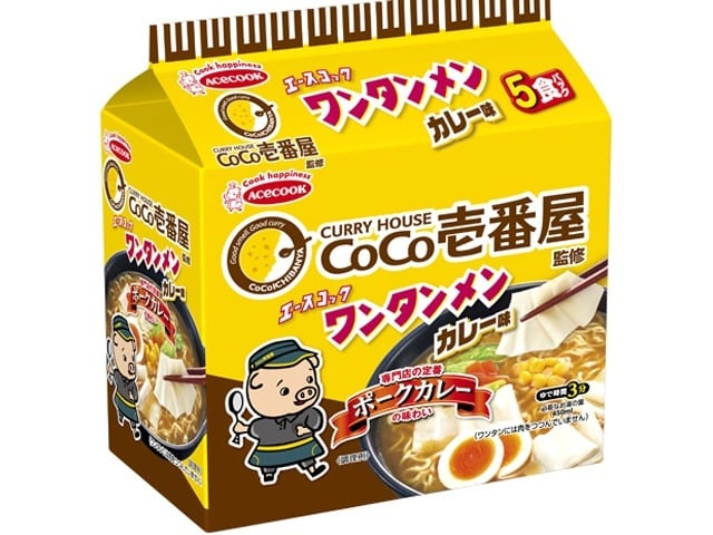 エース(袋)5食ワンタンメン ココ壱監修カレー味 ×6 【送料込】(沖縄・離島は別途)