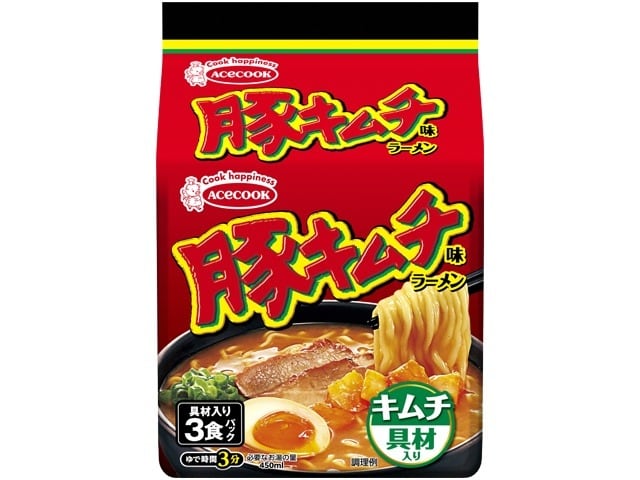 エース(袋)豚キムチ味ラーメン具材入り3P ×27 【送料込】(沖縄・離島は別途)