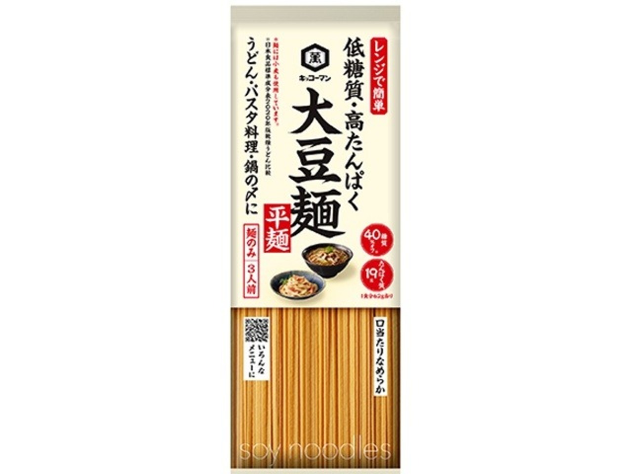キッコーマン 大豆麺 平麺 3人前186g ×20 【送料込】(沖縄・離島は別途)