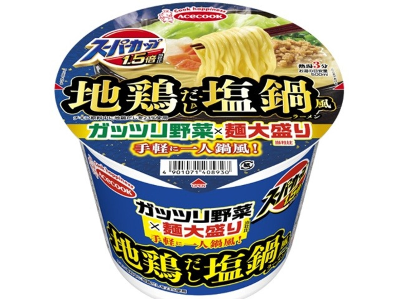 エース スーパーカップ 地鶏だし塩鍋風ラーメン ×12 【送料込】(沖縄・離島は別途)