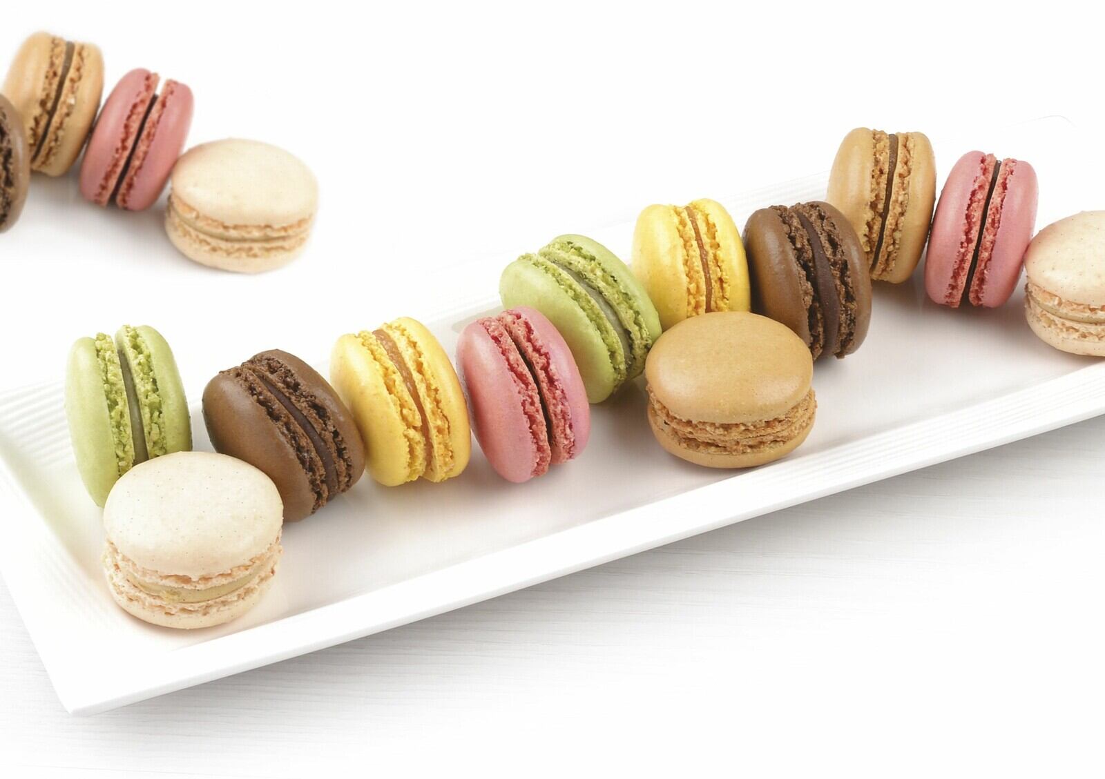絹のように美しくサクッとしたマカロンシェルとコンフィチュールやクリームのテクスチャーにより、一口で様々な食感が楽しめます。