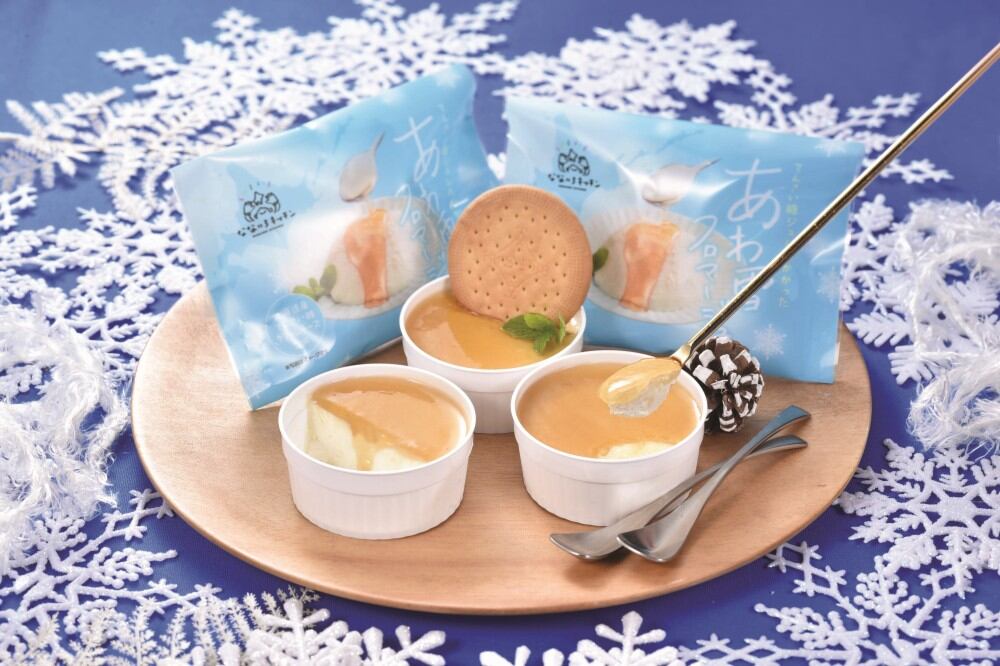 雪をイメージしたくちどけ優しいふわトロ食感のチーズケーキの上に北海道産のてんさい糖のジュレを流し入れました。クリームチーズの豊かな風味・コクとてんさい糖のまろやかな甘さのバランスをお楽しみください。