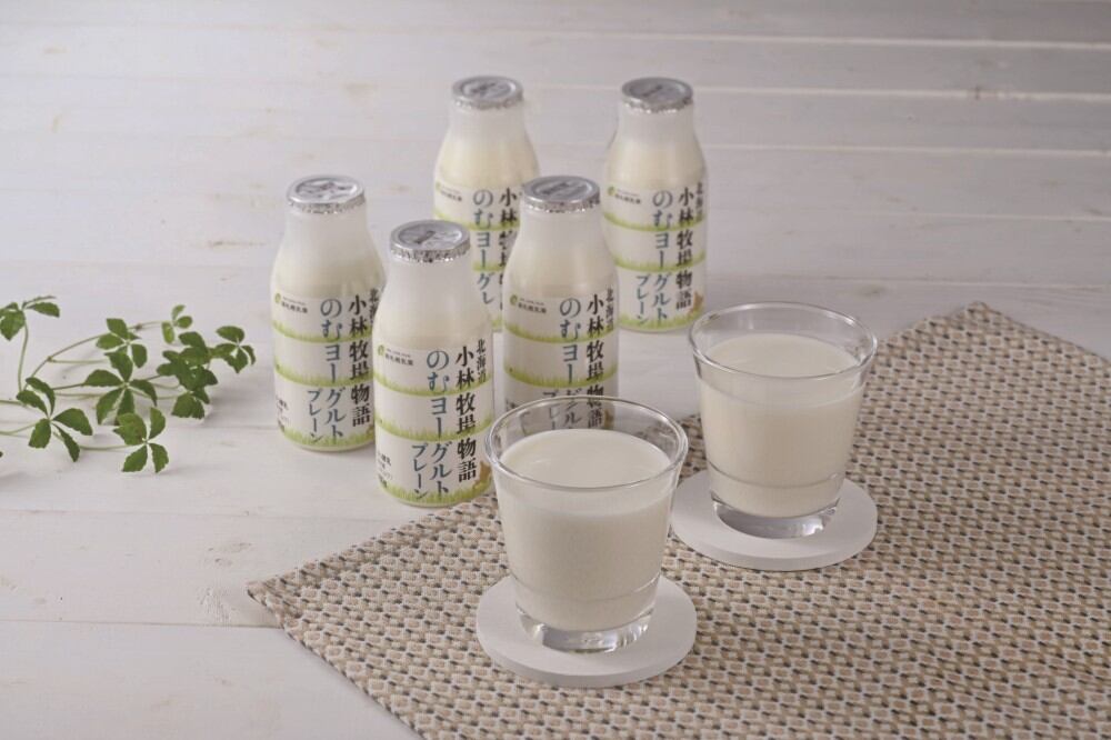 北海道江別市の小林牧場でとれた生乳を100%使用し、独自製法で適度なとろみ・酸味・芳香を引き出した濃厚なのむヨーグルト。