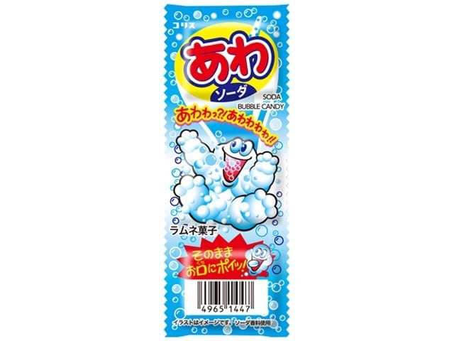炭酸飲料のように泡の刺激を楽しめる、ソーダ味のラムネ菓子です