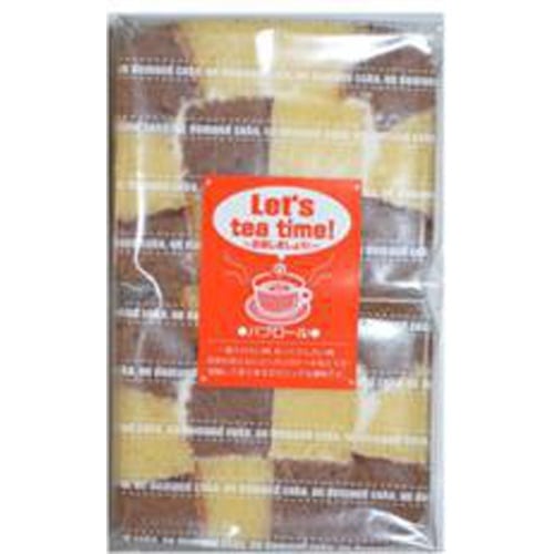 しましま模様のスポンジ生地に定番のクリームをロールにしました
